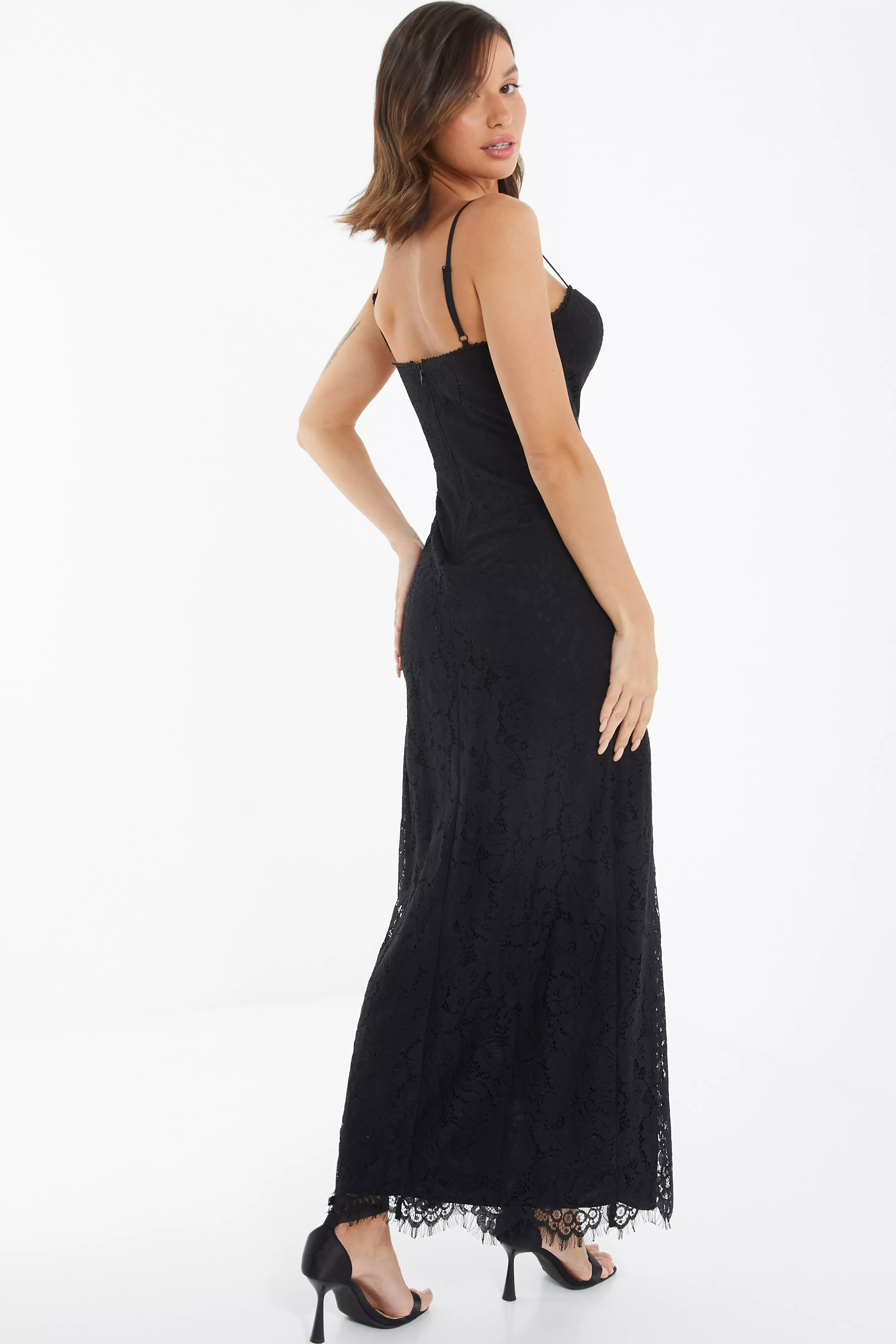 Black Lace Split Leg Maxi Dress QUIZ Clothing