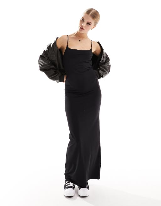 Spaghetti strap plain clearance maxi dress, Pimkie cami strap bodycon maxi dress in black clearance