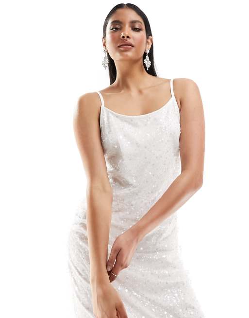 Y.A.S Bridal embellished sequin maxi cami dress in white