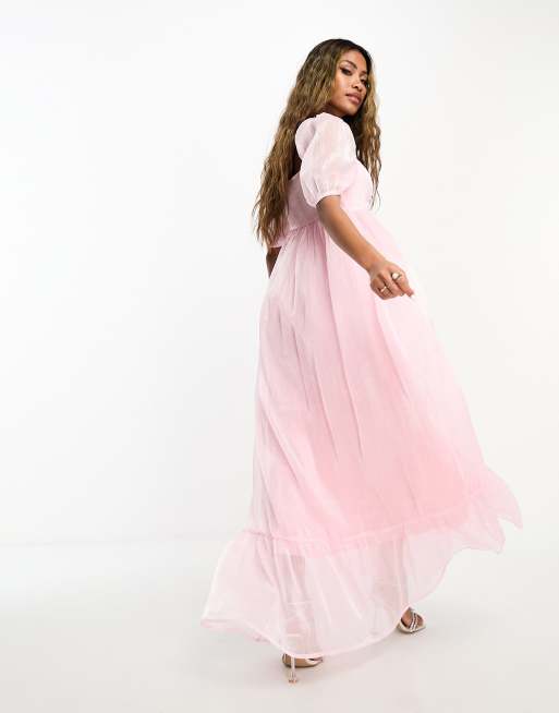 Collective the Label exclusive empire maxi dress in metallic baby pink