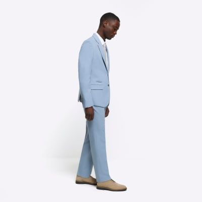 Mens River Island Blue Slim Fit Textured Suit Trousers 45.00