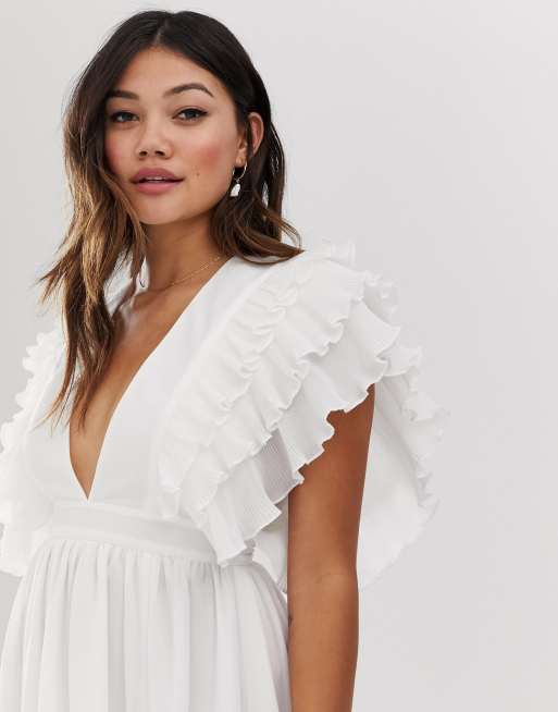 True Decadence premium plunge front maxi dress with shoulder detail in white