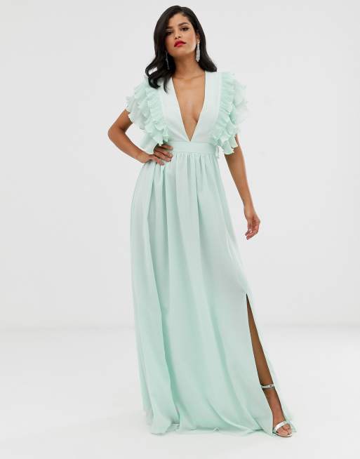 True Decadence Tall premium plunge front maxi dress with shoulder detail in soft mint