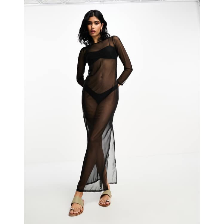 Hunkemoller mesh long summer beach cover up dress in black ASOS