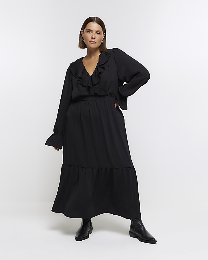 Black frill sleeve clearance dress, Plus black frill swing maxi dress River Island clearance