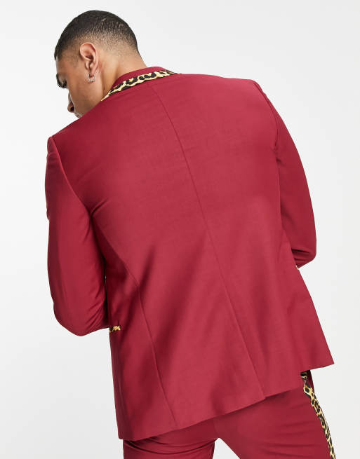 Red leopard print clearance suit, Twisted Tailor suit jacket in red with leopard print contrast insert clearance