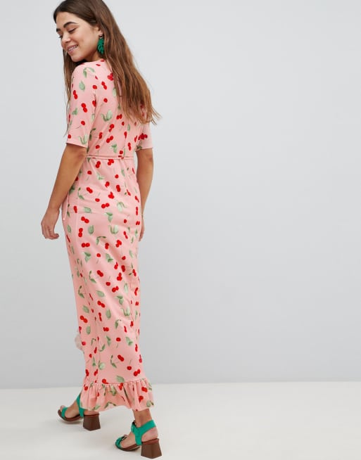 Cherry print maxi clearance dress, LIMITED COLLECTION Plus Size White Cherry Print Frill Maxi Dress clearance