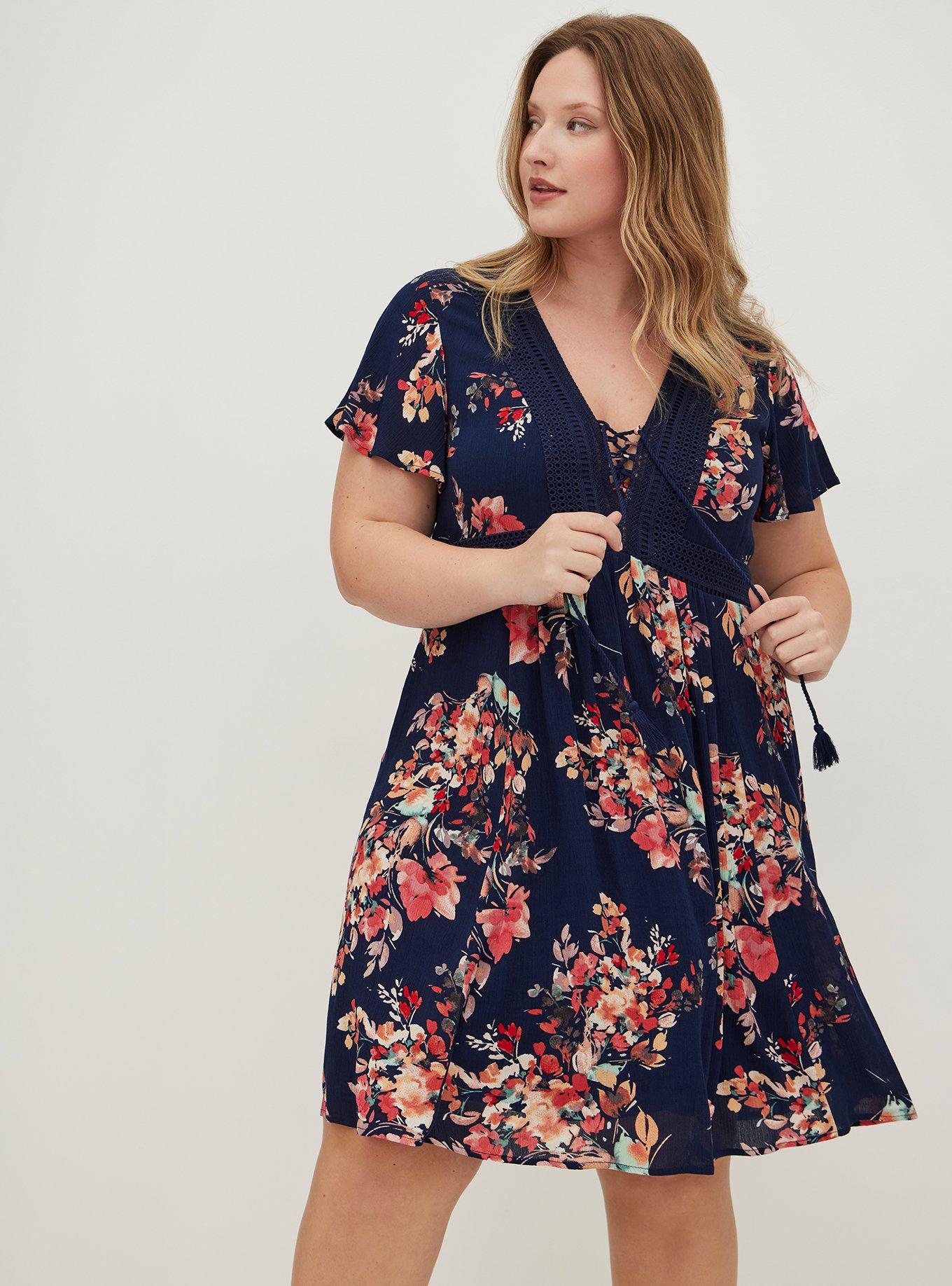 Plus Size Mini Gauze Lace Up Skater Dress Torrid