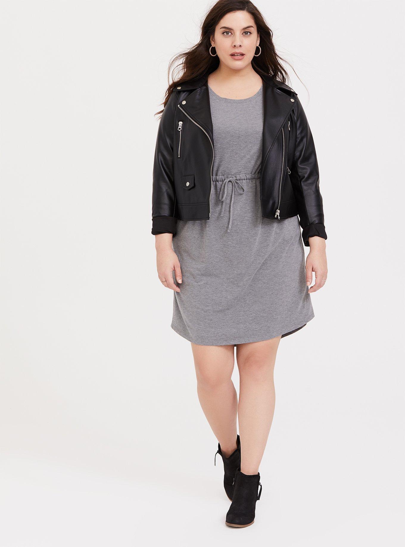 Plus Size Light Grey Terry Drawstring Dress Torrid