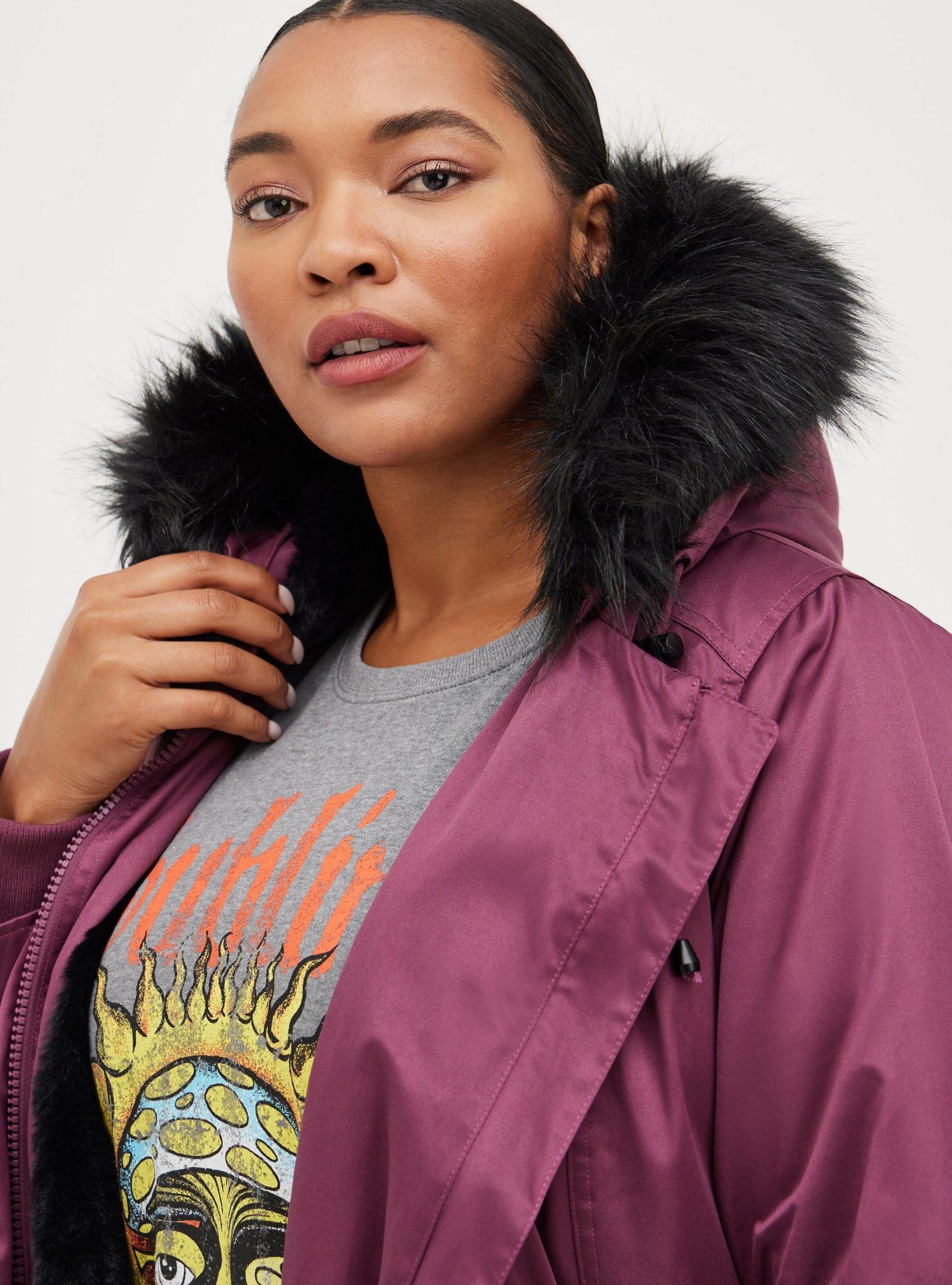 Torrid Winter Coat 1X XL Parka Purple Faux Fur Lined Trim Jacket Plus Size NWT eBay