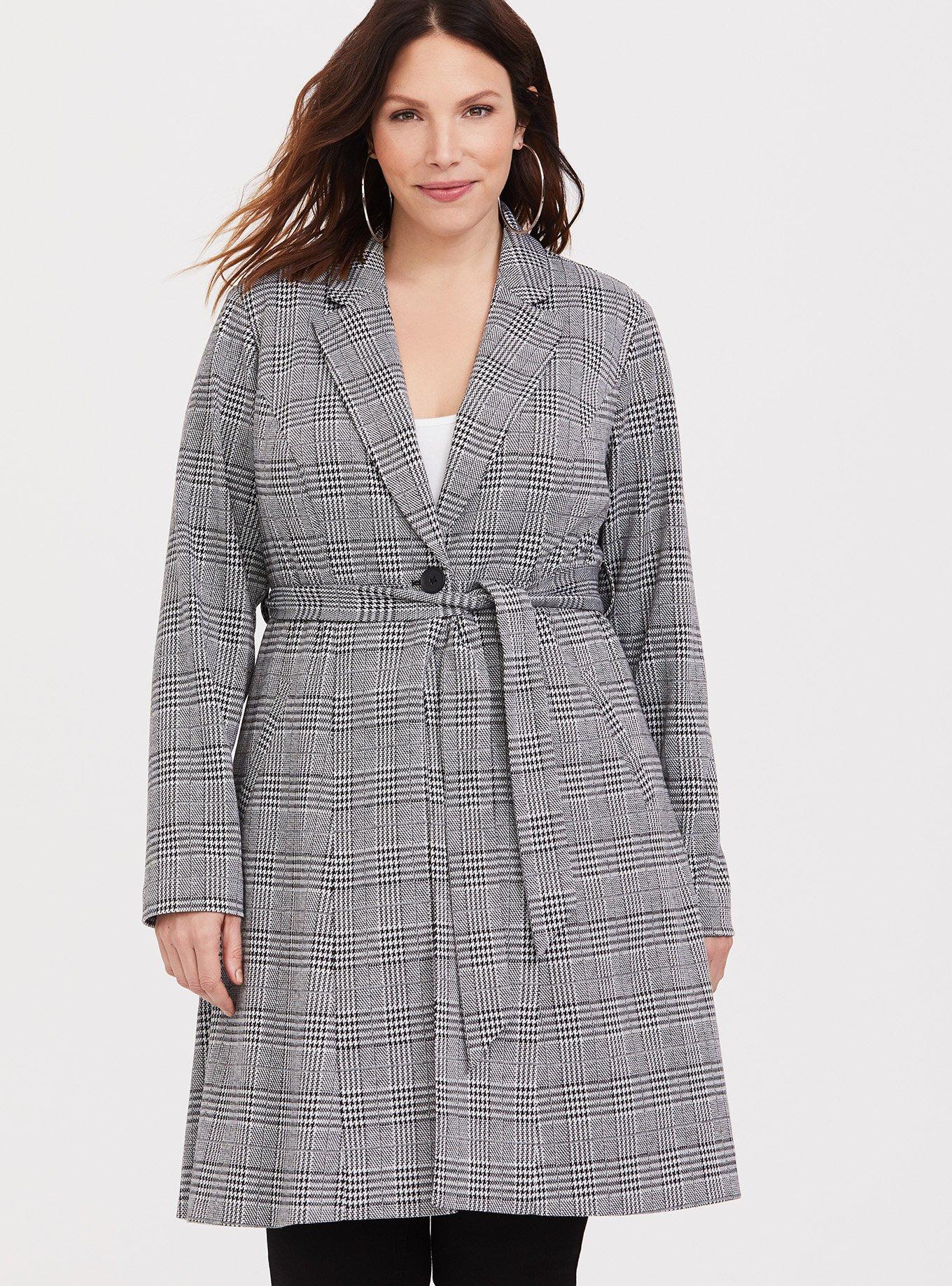 Plus size plaid clearance trench coat, Plus Size Plaid Long Jacket with Waist Belt Asoph clearance