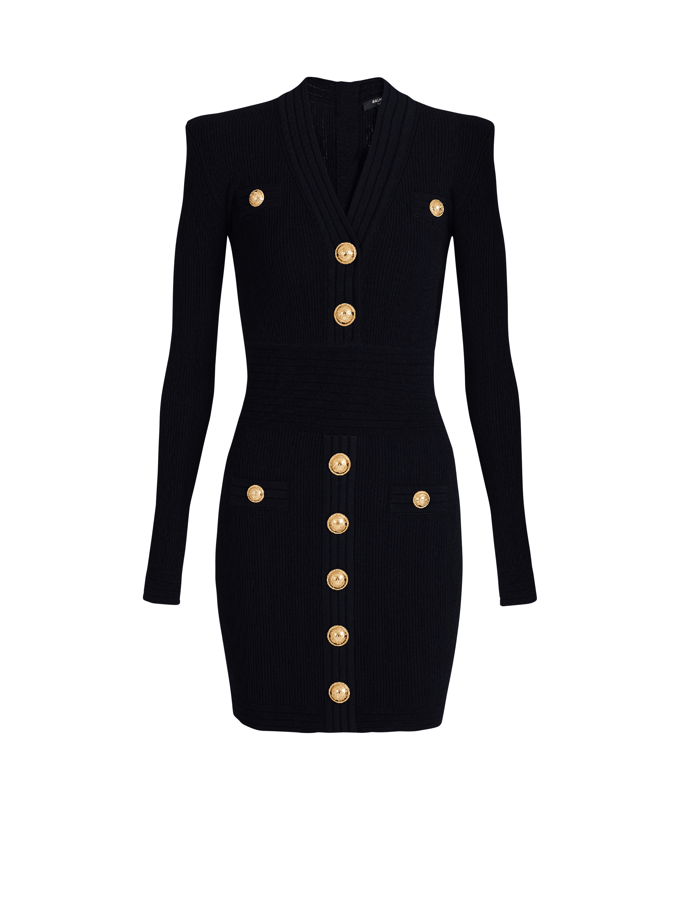 Balmain black dress clearance gold buttons, Balmain Button Embellished Flared Mini Dress Black clearance