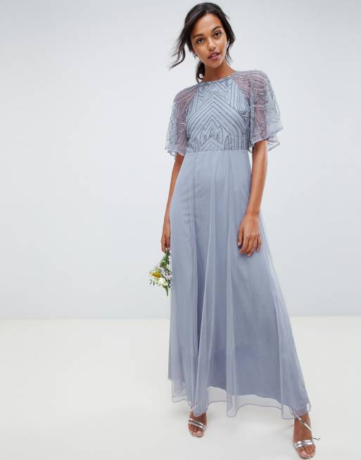 Asos design delicate embellished clearance angel sleeve maxi dress, Dresses Angel Sleeve Hand Embellished Maxi Dress Coast clearance