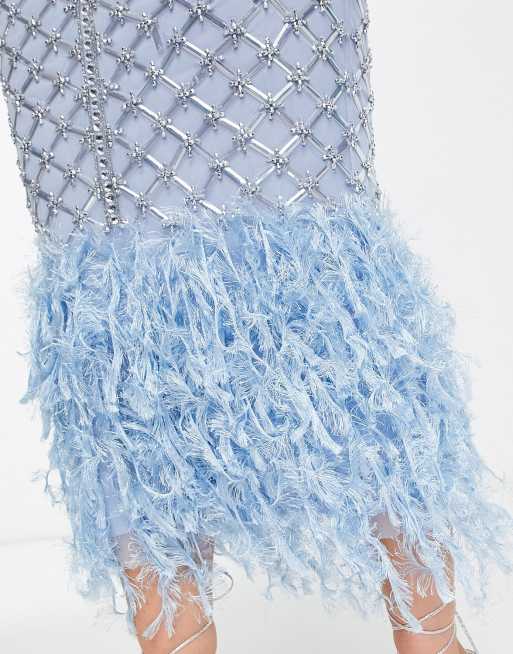 ASOS DESIGN robe embellished maxi dress with feather hem