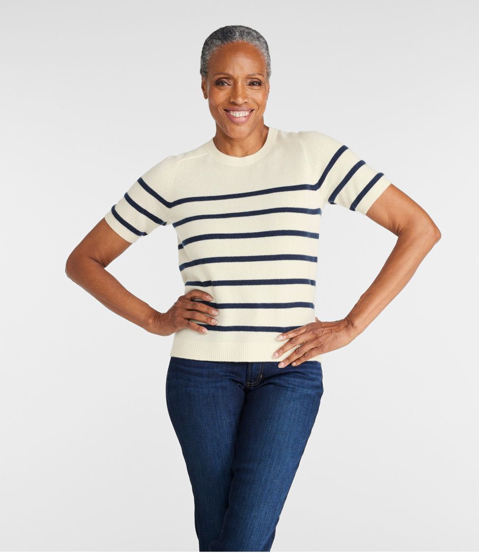 Short sleeve cashmere clearance sweater, Women s Classic Cashmere Sweater Short Sleeve Tee Stripe at L.L. Bean clearance