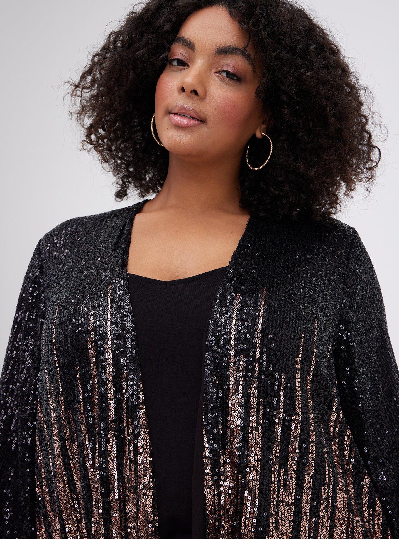 Plus Size Hi Lo Ombre Kimono Sequin Black Gold Torrid