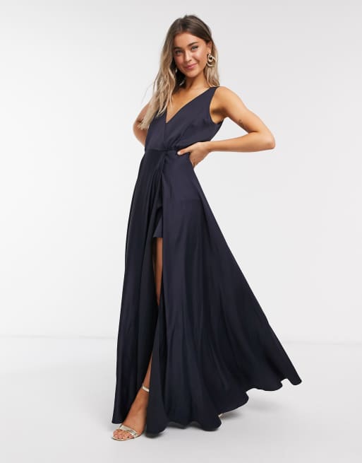 Inu Satin Strappy Maxi Dress Ocean Depths French Connection US