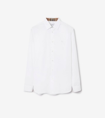 Stretch Cotton Blend Shirt in White Men Burberry Official