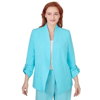 Plus Size Ruby Rd. By The Sea Open Blazer with Roll Tab Sleeve