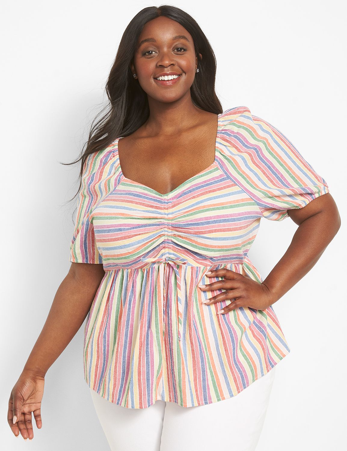 Classic Short Sleeve Ruched Front Babydoll Top LaneBryant
