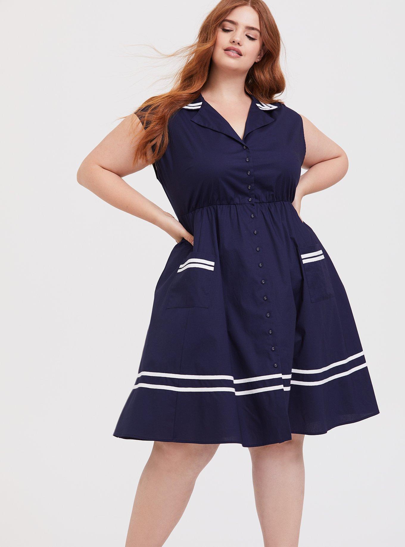 Plus Size Navy Button Front Sailor Swing Dress Torrid