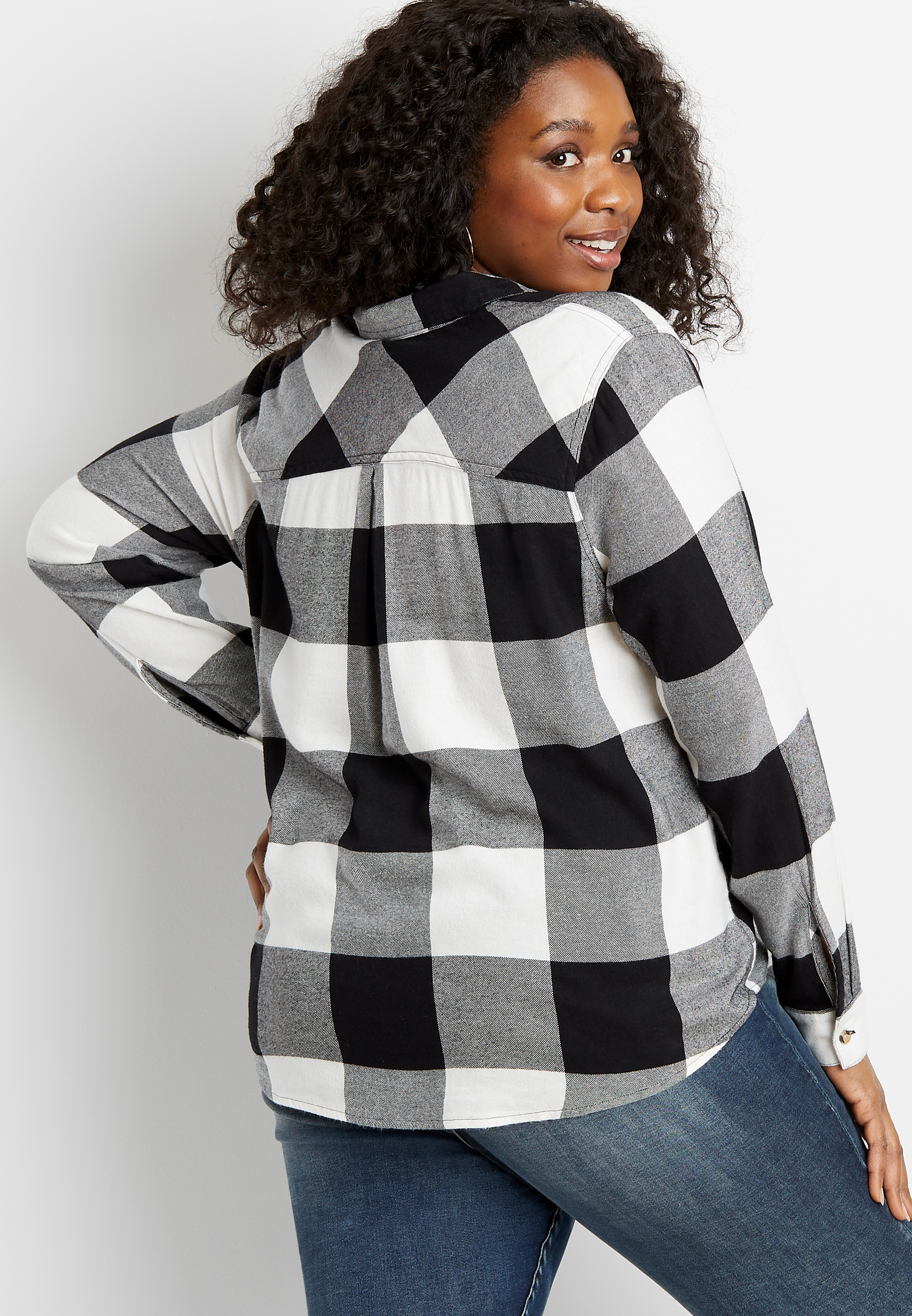 Plus size black and white clearance plaid shirt, Plus Size Black Buffalo Plaid Button Down Shirt clearance