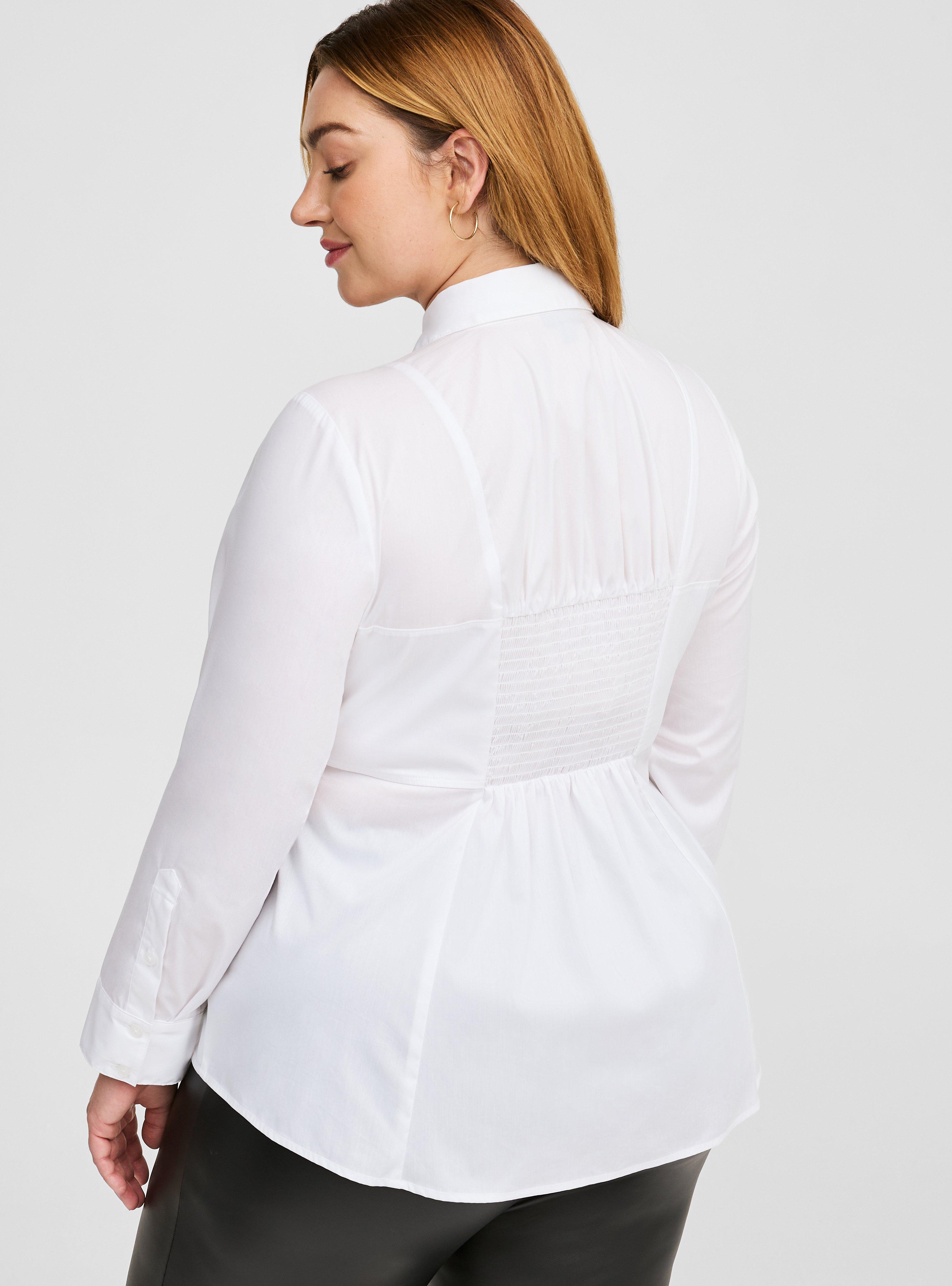 Torrid clearance white shirt, Plus Size Poplin Corset Detail Smocked Back Button Up Shirt Torrid clearance