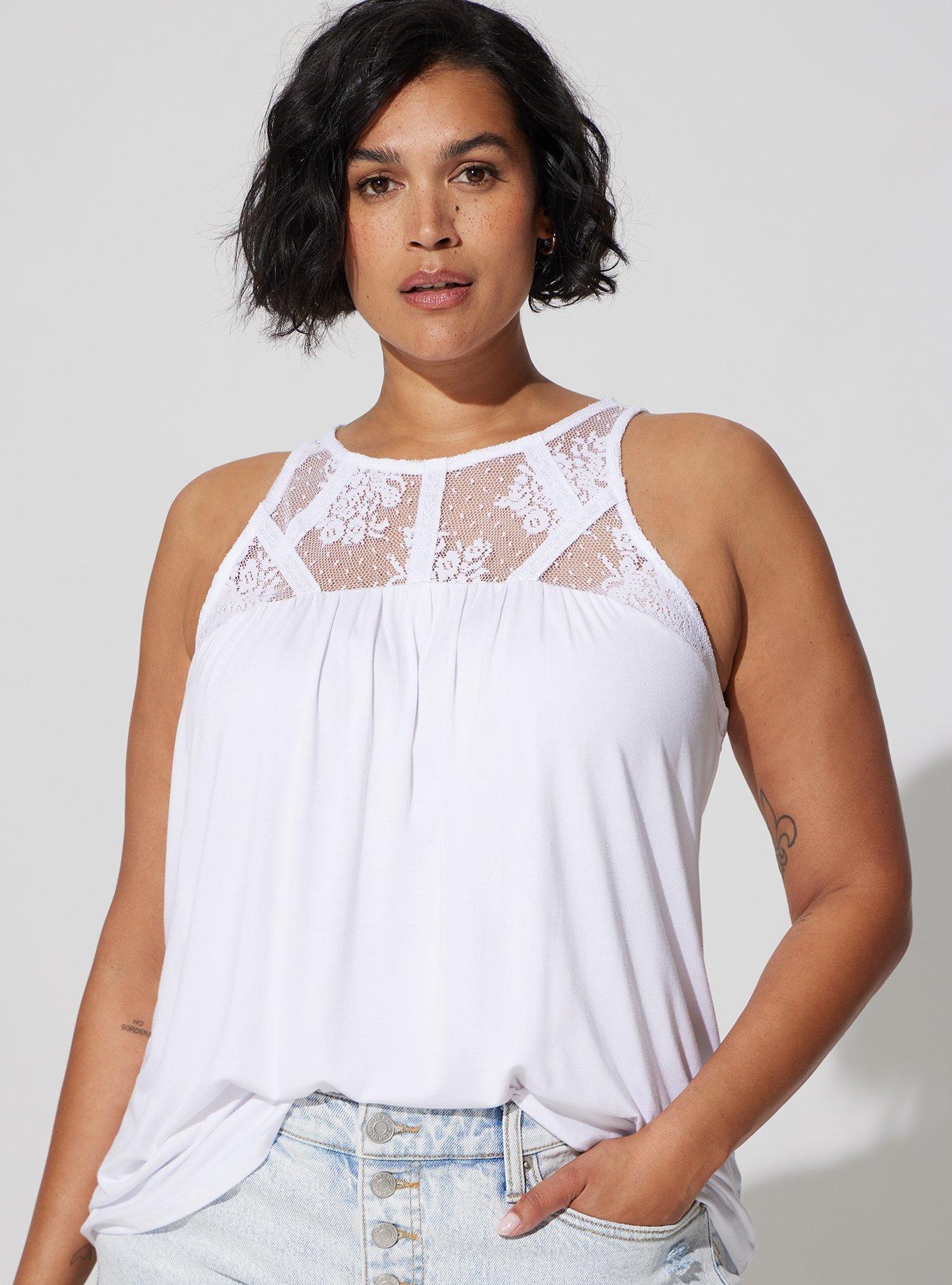 Plus Size Super Soft Crew Neck Lace Yoke Swing Tank Torrid
