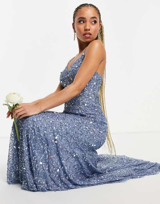 Beauut Bridesmaid allover embellished maxi dress with cami straps in dark blue