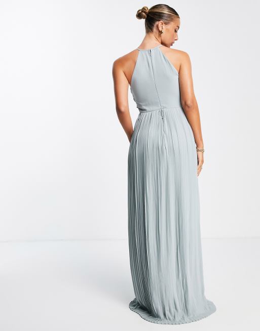 Tfnc prague blue clearance grey maxi dress, TFNC bridesmaid pleated wrap detail maxi dress in navy clearance