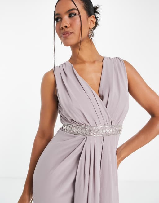 TFNC Bridesmaid drape front maxi dress in lavender grey ASOS