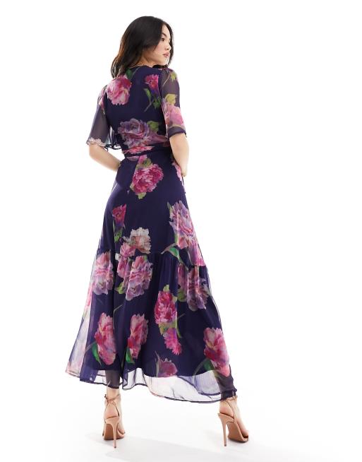 Phase Eight Verena Floral Maxi Dress Dusty Pink Navy