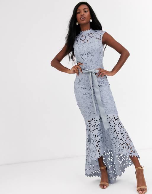 Chichi london maxi clearance dress, Chi Chi London Tall wrap tie lace maxi dress in gray clearance