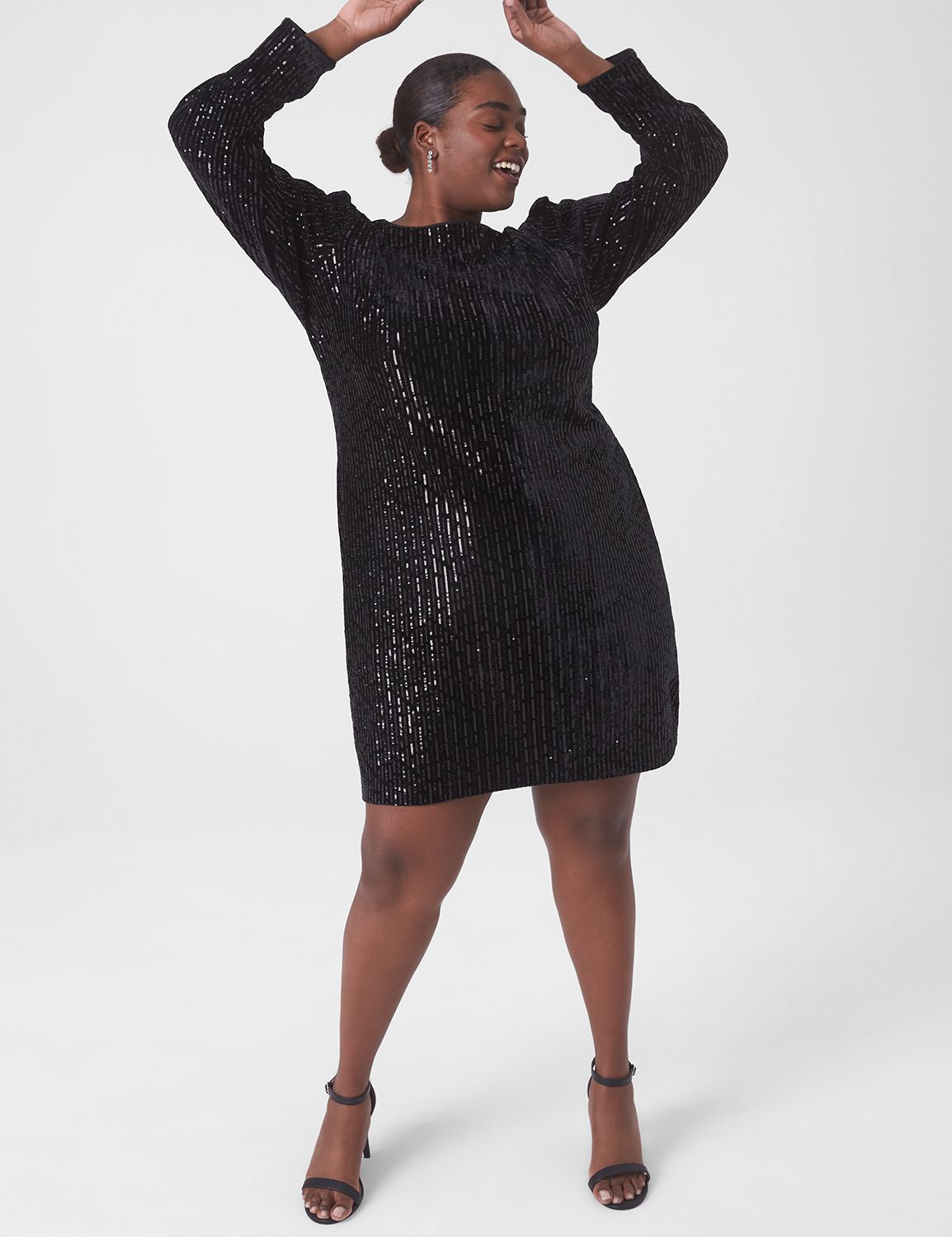 Lane Bryant Silver Sequin Black Mesh Mini Shift Dress 3 4 Sleeve Women s 16 NWT