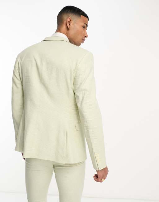 ASOS DESIGN slim suit jacket in linen in puppytooth in green