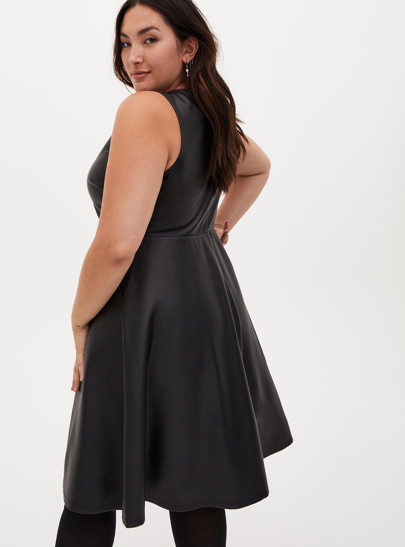 Cocktail clearance dresses torrid, Plus Size Black Faux Leather Skater Dress Torrid clearance