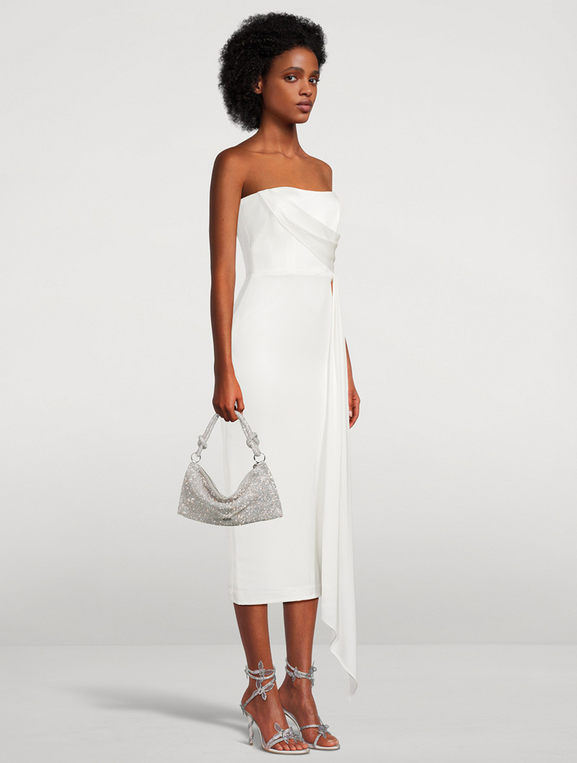 ALEX PERRY Draped Strapless Cr pe Midi Dress Holt Renfrew