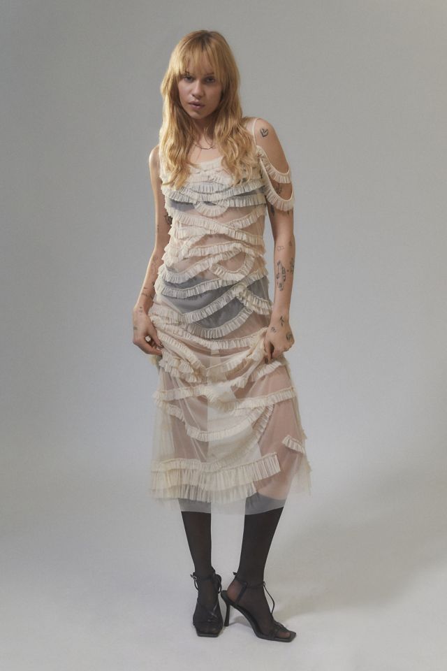 Urban Outfitters Uo Anderson Sheer Ruffle Midi Dress in White