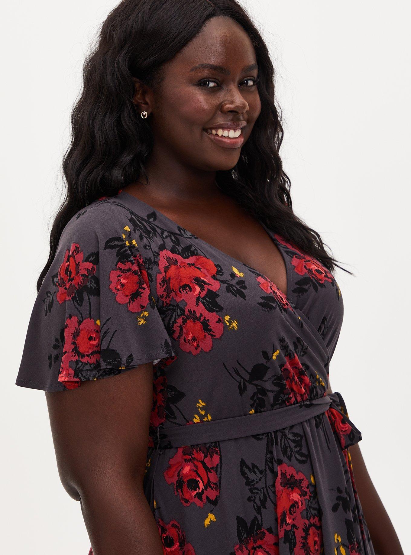 Rose plus size clearance dress, Plus Size Rose Grey Floral Studio Knit Wrap Midi Dress Torrid clearance