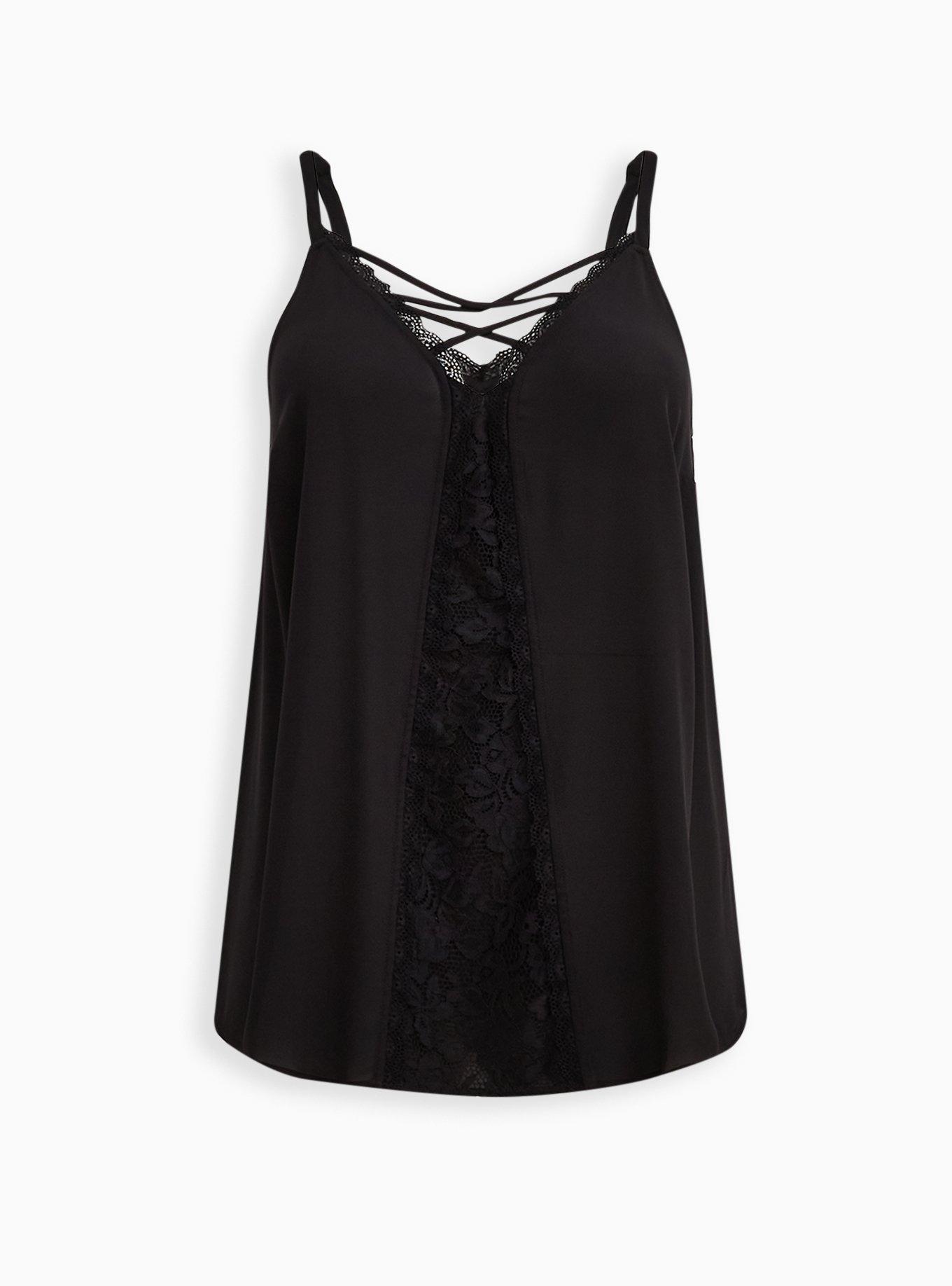 Black lace camisole clearance plus size, Plus Size Strappy Lace Cami Georgette Black Torrid clearance