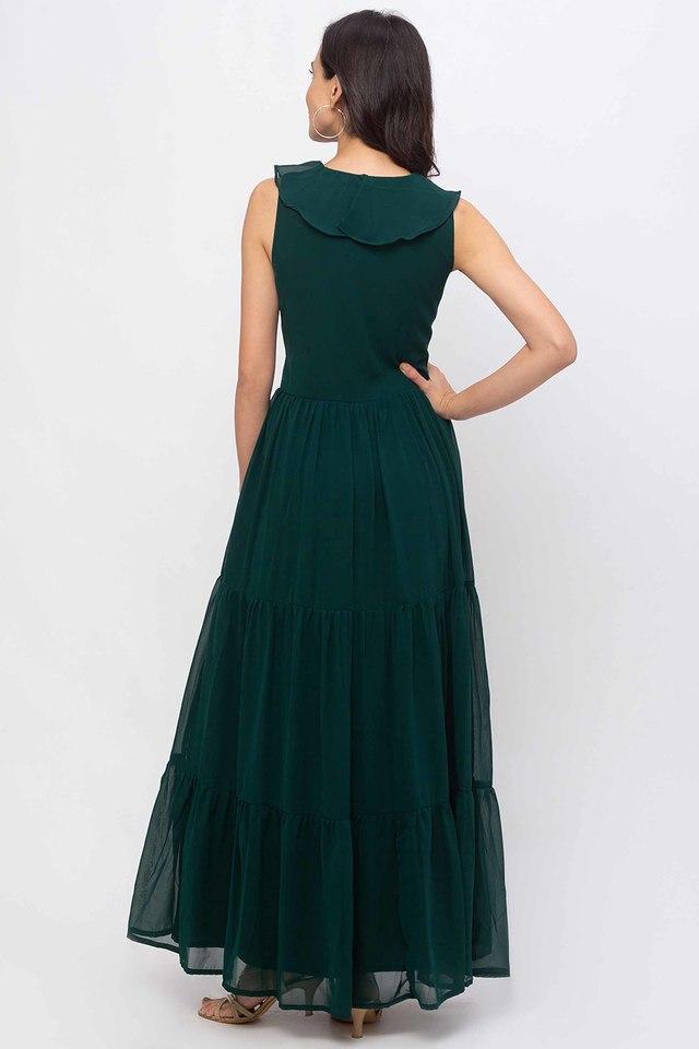 Buy ITI Teal Blue Tiered Georgette V Neck Maxi Dress for Womens