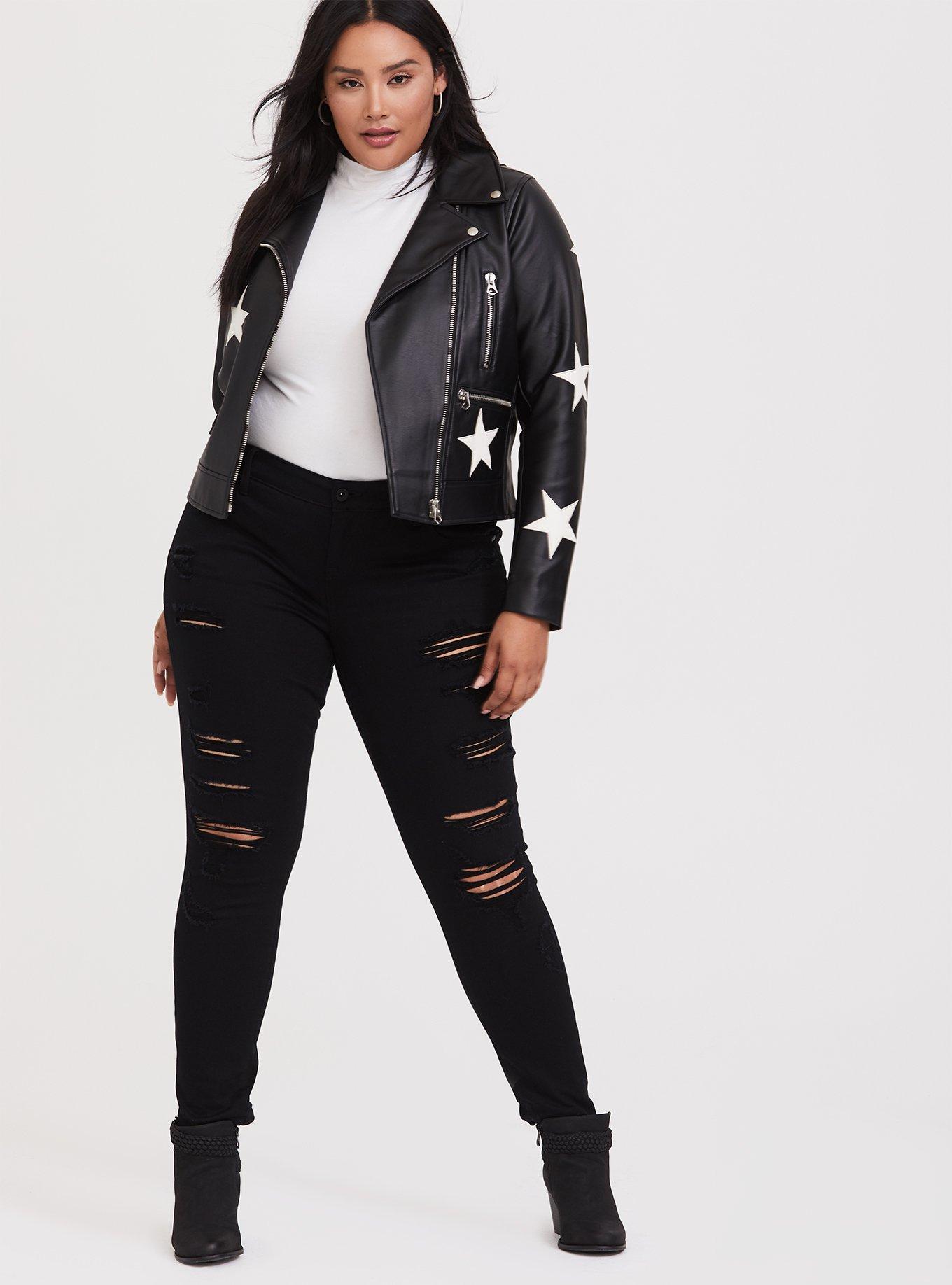 Plus Size Black Faux Leather White Star Moto Jacket Torrid