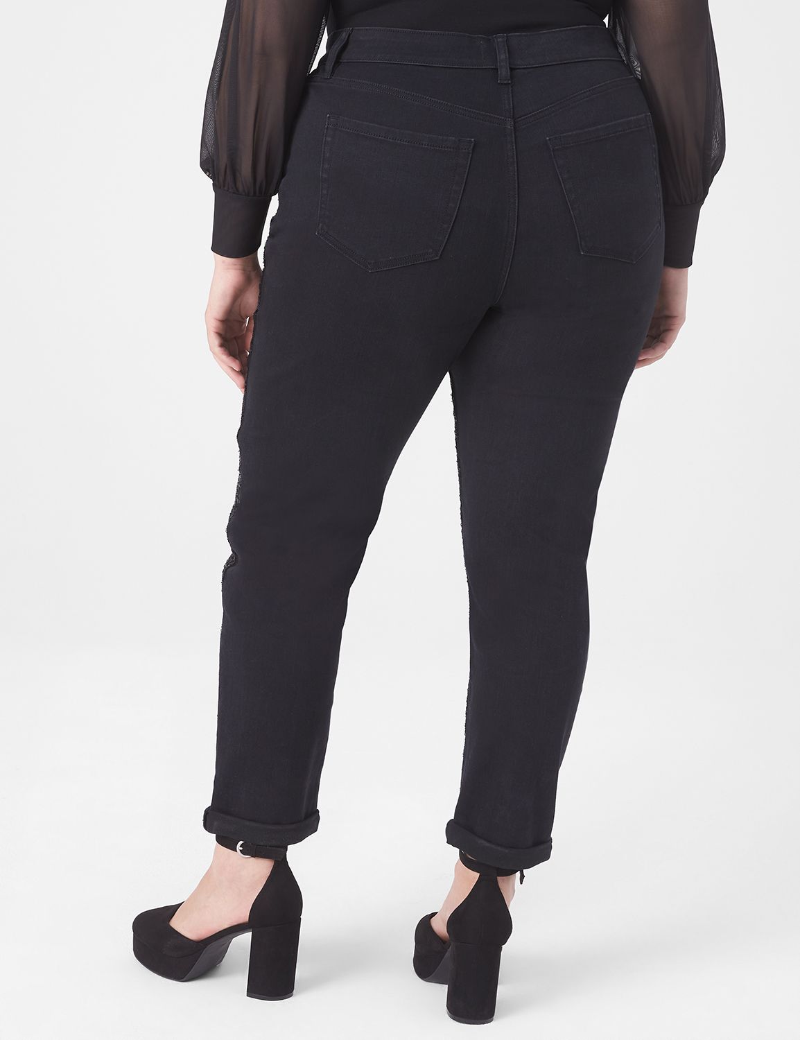 Signature Fit Boyfriend Jean Black With Sequins LaneBryant