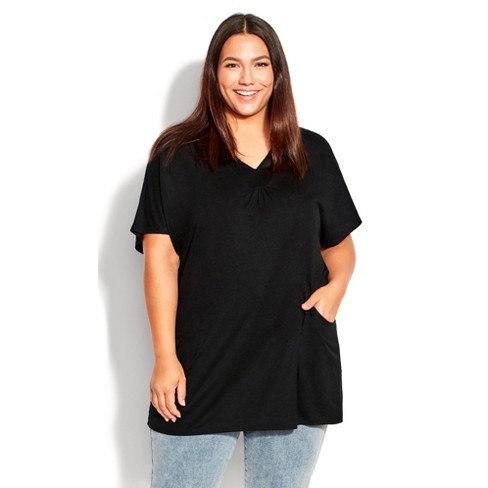 Women s Plus Size Pocket Pleat Tunic Black Avenue Target