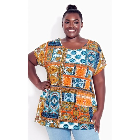 Target womens plus clearance tops, Avenue Women s Plus Size Phoebe Lattice Print Top Spice Patch clearance