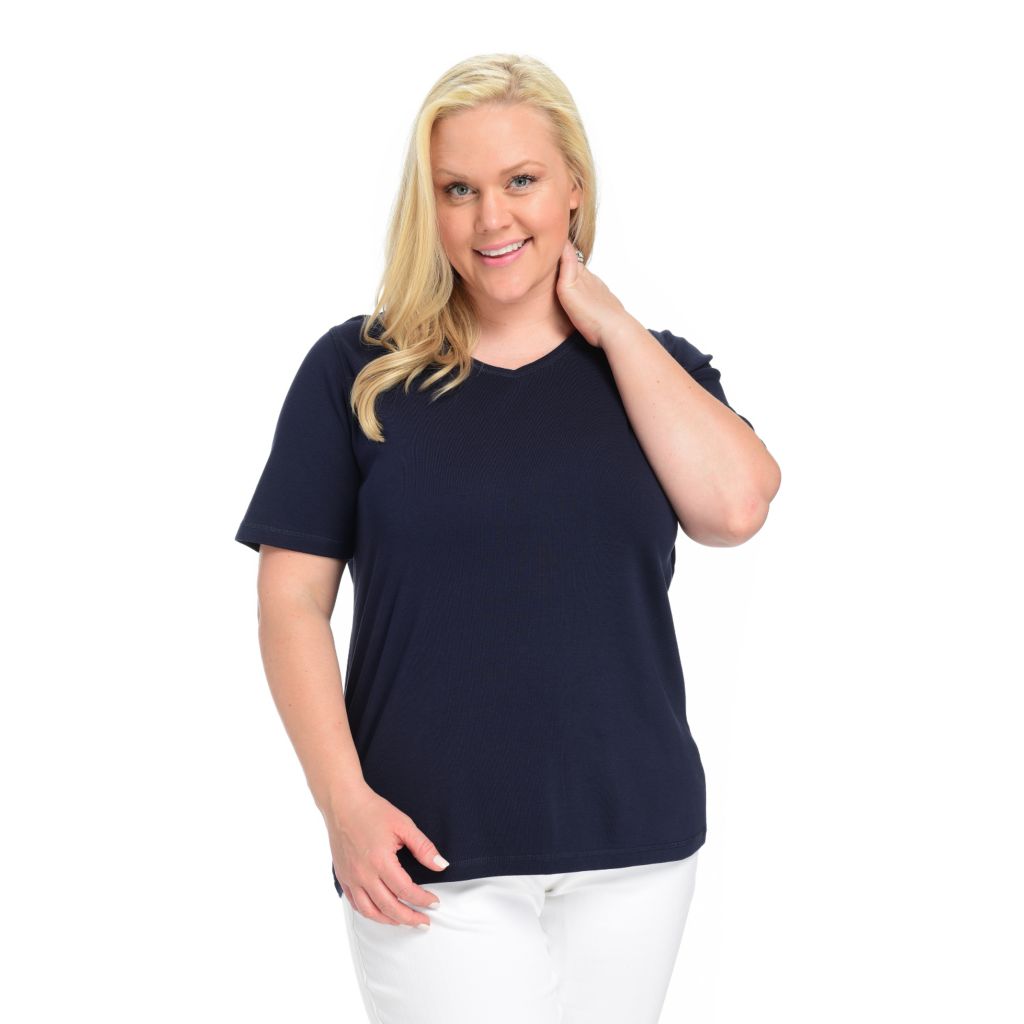 Christopher Banks C B Short Sleeve Top Stitch Solid V Neck