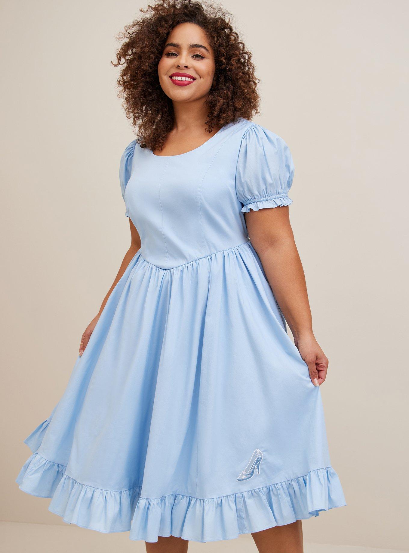 Plus Size Disney Cinderella Stretch Poplin Puff Sleeve Midi