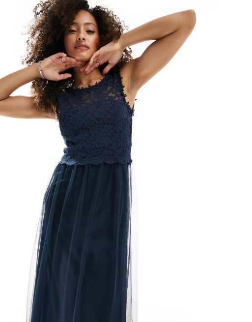 Navy tulle maxi clearance skirt, Vila Bridesmaid lace and tulle maxi dress in navy ASOS clearance