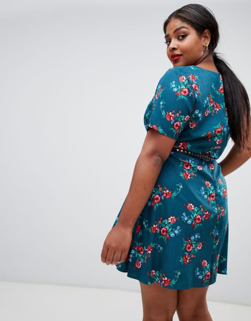 Yumi Plus Floral print dress with studded belt ASOS