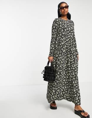 ASOS DESIGN maxi smock dress in black and yellow floral print ASOS